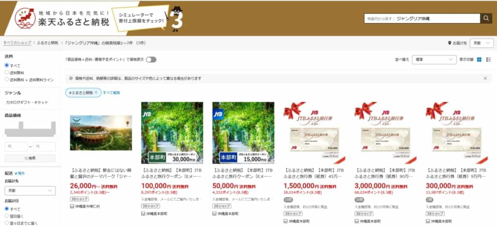 返礼品の申し込みは、各ふるさと納税サイトで今帰仁村やジャングリア沖縄などのキーワードで検索すれば表示されます。